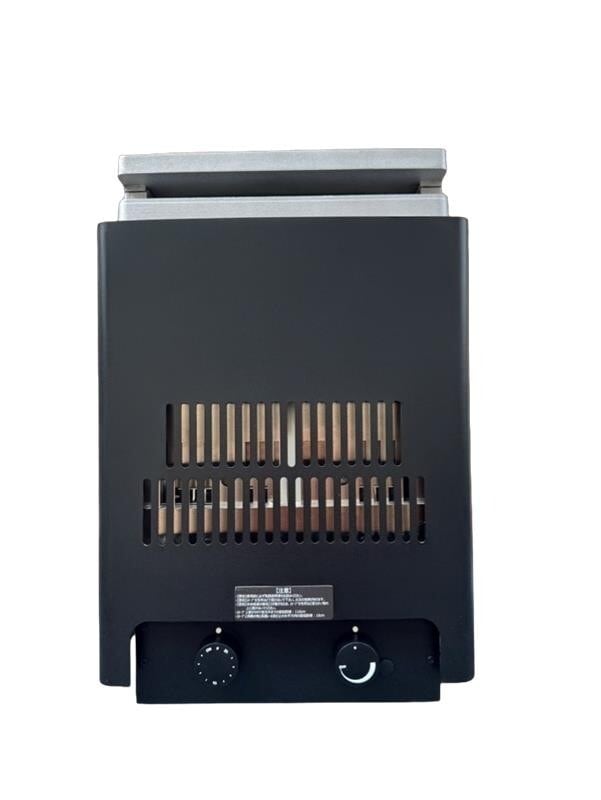 ■ マットブラックの重厚感とシルバーのプレートが光るミニマルなデザイン。サウナ内をただ温める道具ではなく、空間の価値を高める「家具」としての品格を備えています。